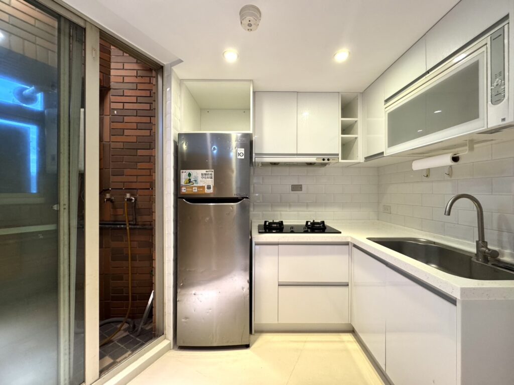 格局配置為少見的一房類型,客廳與臥室有所區隔,且有獨立的廚房空間,適合新婚夫妻或是退休族群。